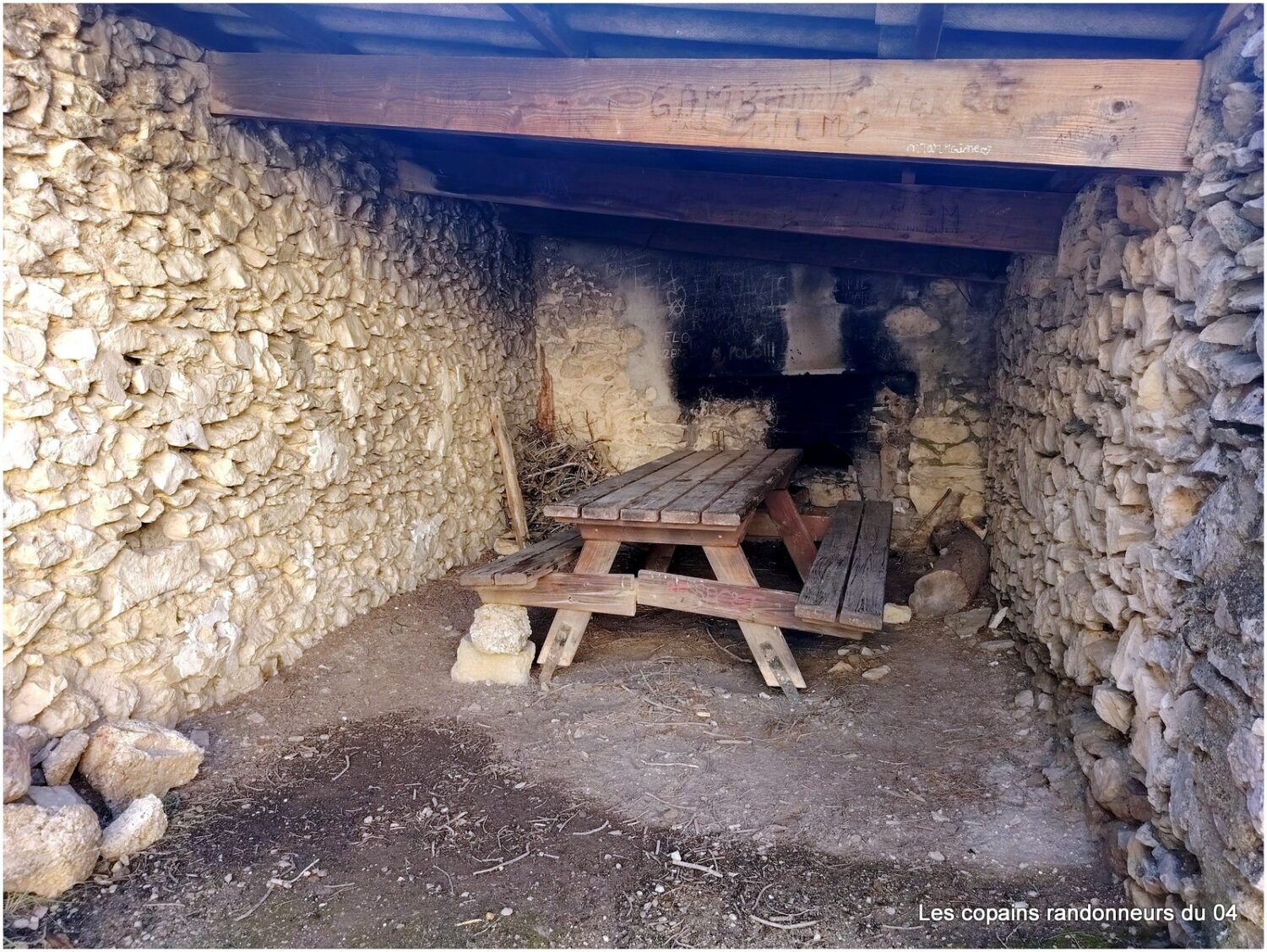 Table à l’abri du vent et de la pluie, avec un four pour quelques grillades