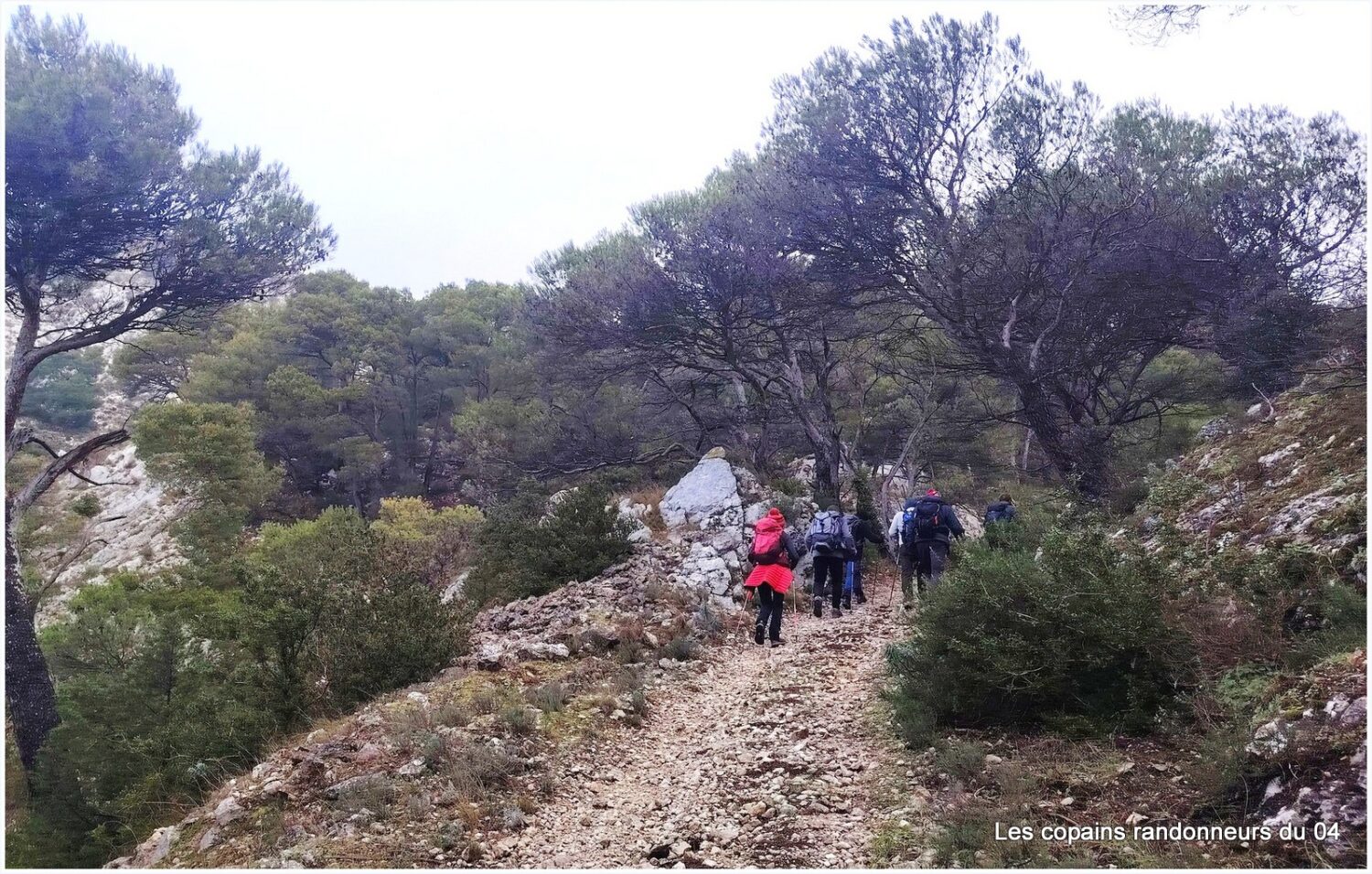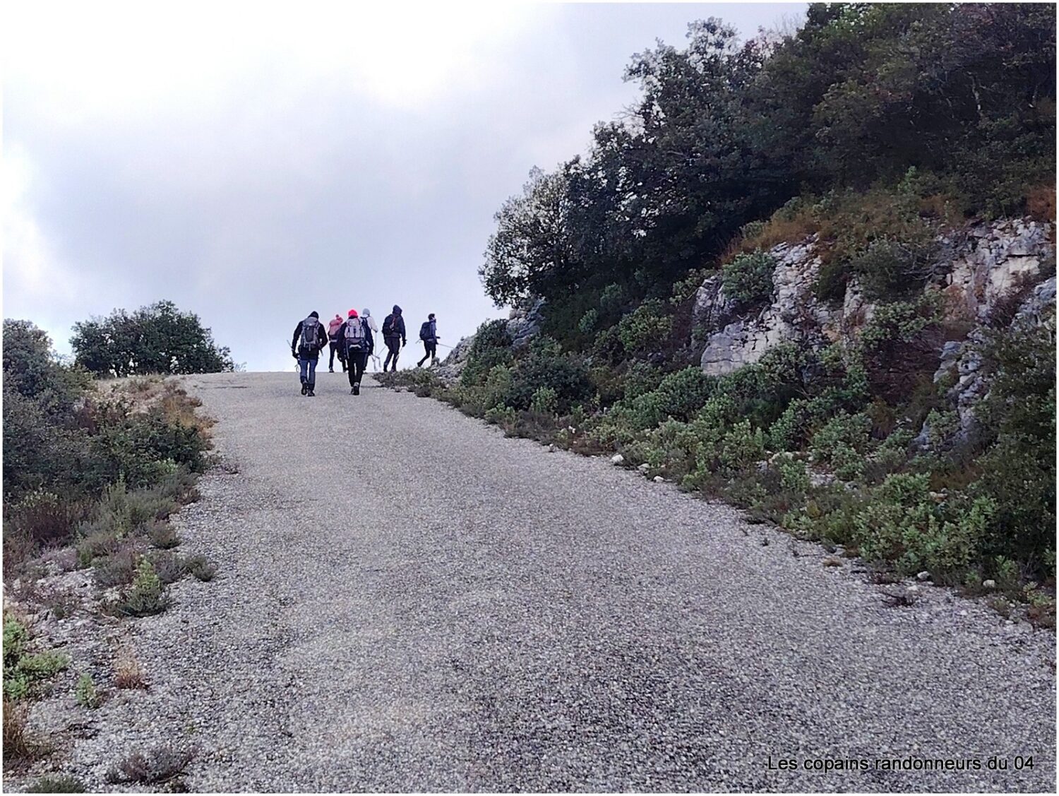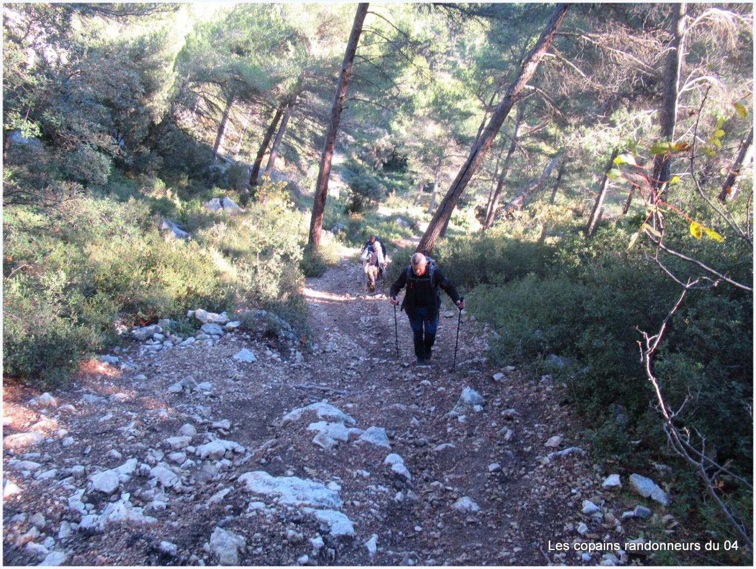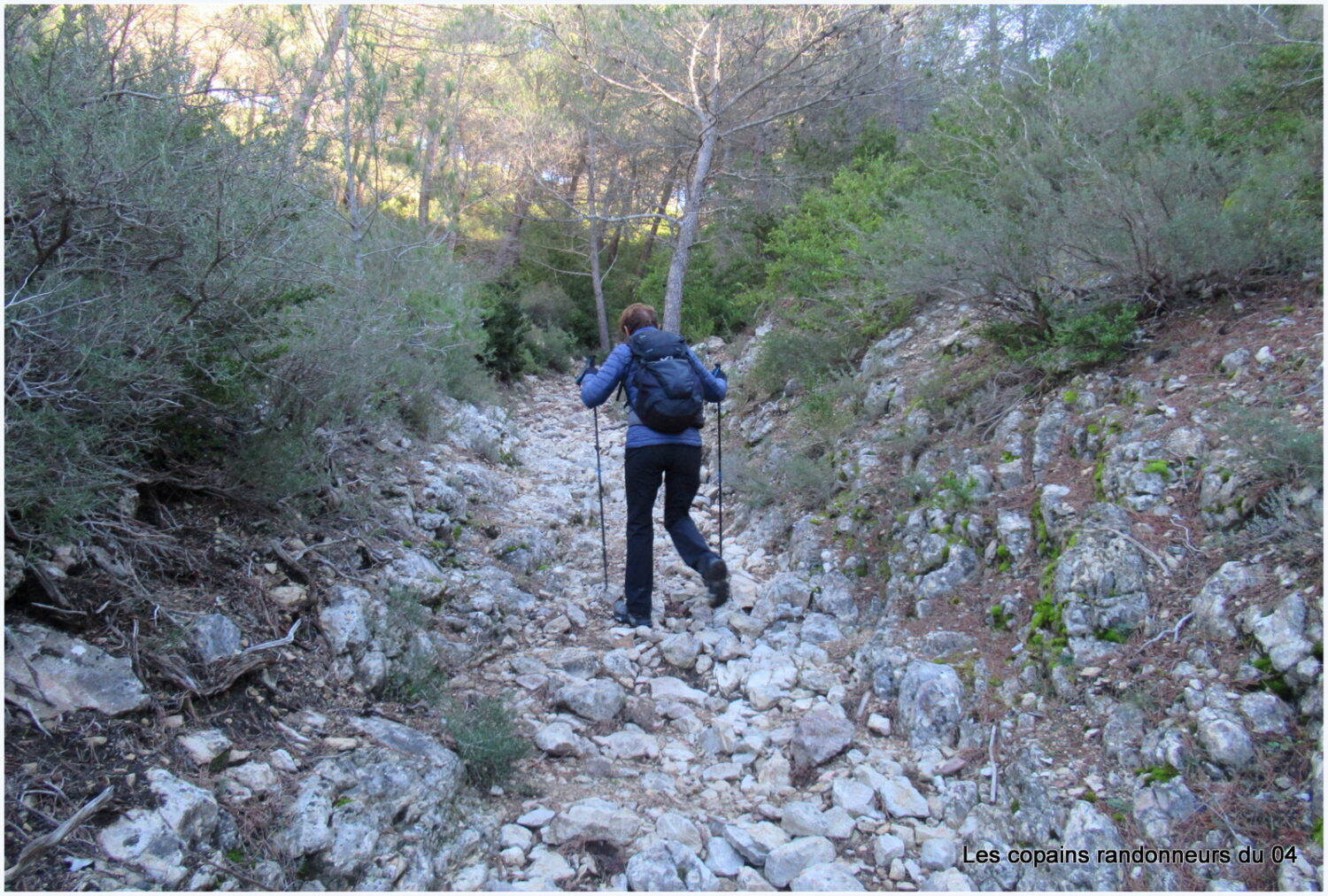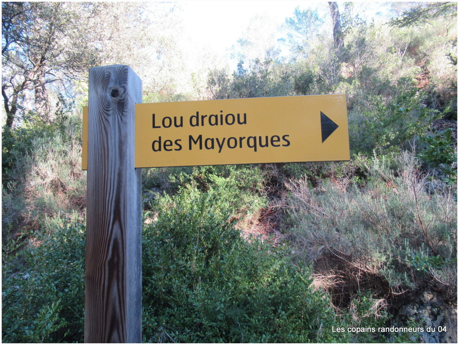 Direction Les Mayorques en suivant un sentier balisé et caillouteux qui grimpe sèchement