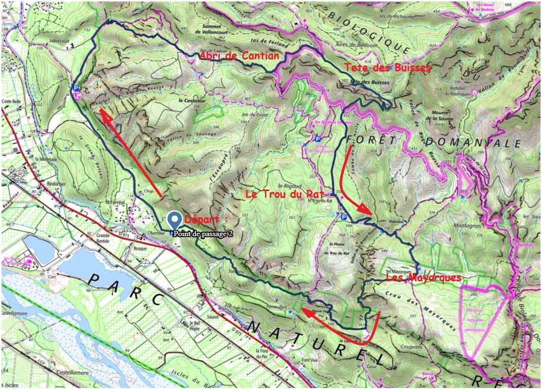 Une jolie boucle face Sud du Petit Luberon de 17 km 720 m D+ au départ de Cheval-Banc qui permet de découvrir l’Abri de Cantian, la Tête des Bouisses, le refuge du Trou du Rat et le Mas des Mayorques. Itinéraire partiellement balisé, aucune difficulté, sentiers très caillouteux. GPS recommandé.