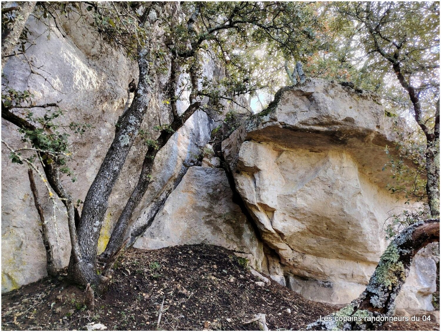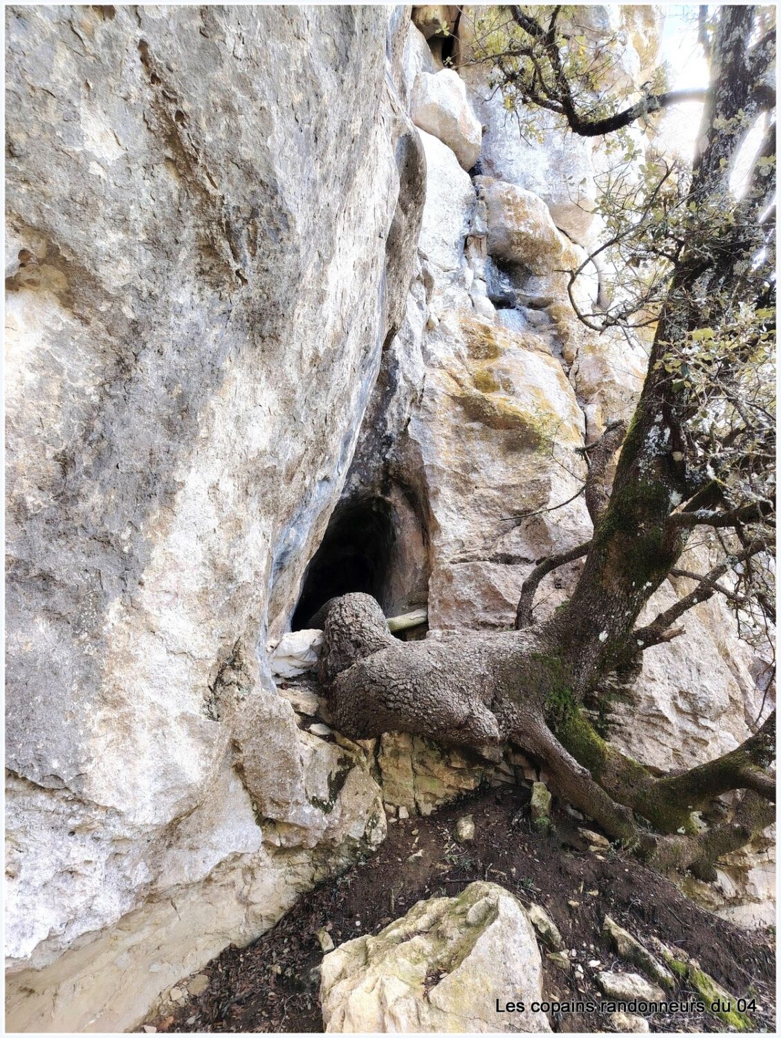 Apres avoir longé la barre rocheuse à gauche du ravin de Carluc en suivant une sente, nous rejoignons le GR pour grimper de l’autre coté et atteindre une magnifique barre rocheuse à la recherche de la Grotte de Carluc (non notifiée sur IGN) mais présente sur OSM.