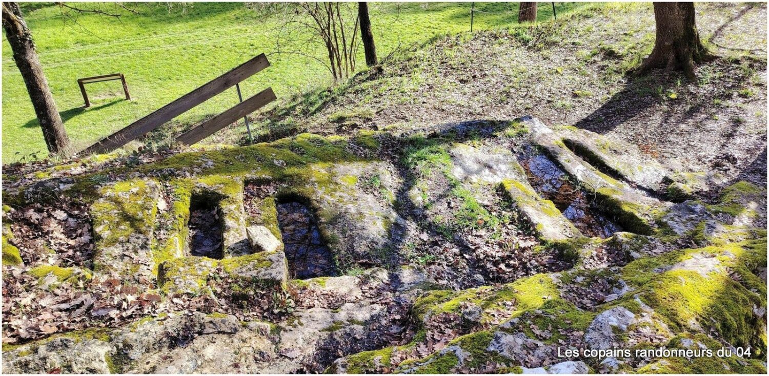 Une nécropole de tombes rupestres, des restes de deux autres églises ruinées, en partie creusées dans le rocher, d’une galerie également creusée dans le roc et présentant aussi des tombes rupestres. Tout cela jouxte une petite falaise, percée de baumes et grottes et au pied de laquelle sourd encore l’eau de l’ancienne source qui alimente un petit ruisseau.