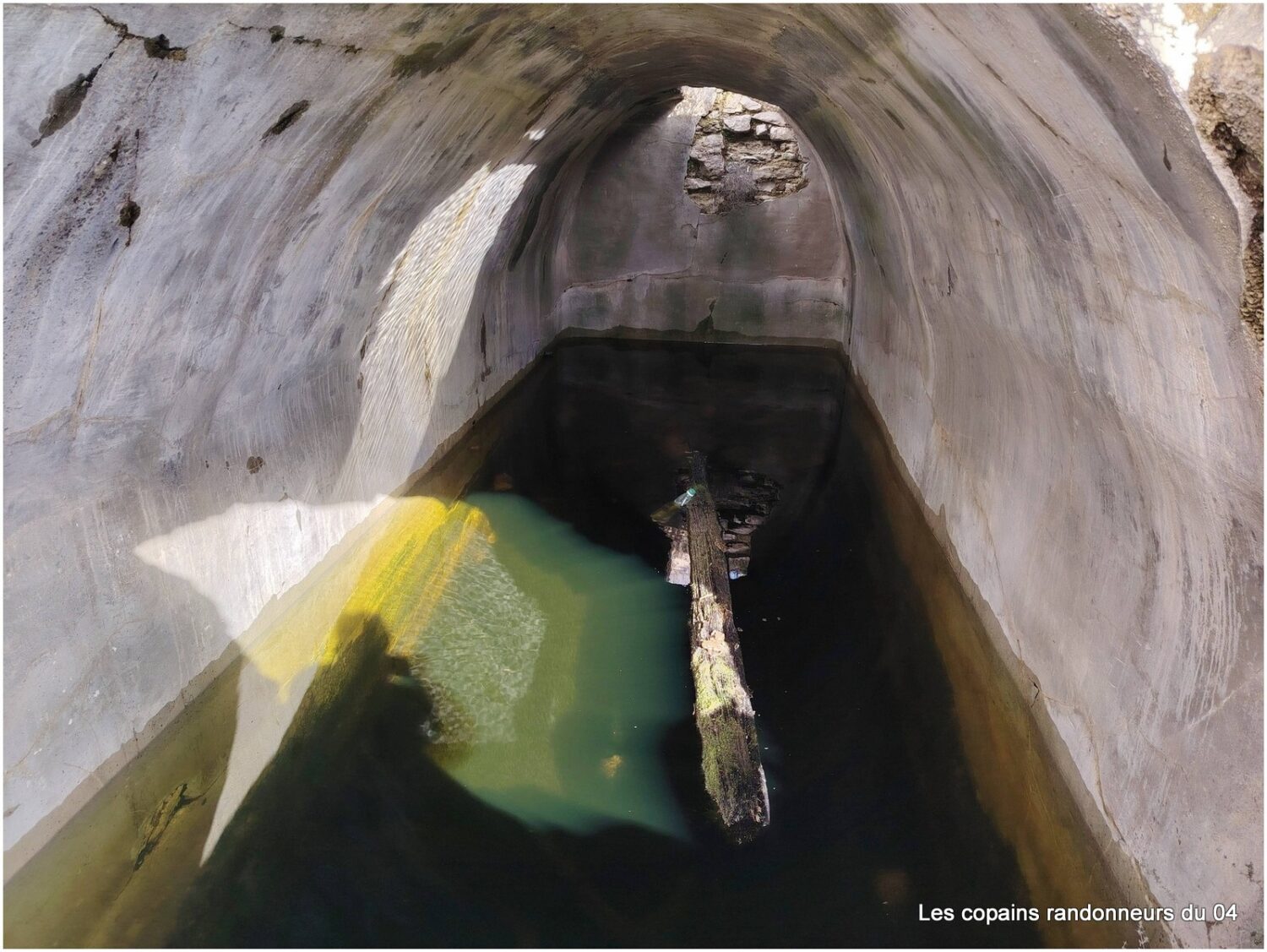 Un long boyau dont l’entrée est camouflée par le tronc d’un arbre