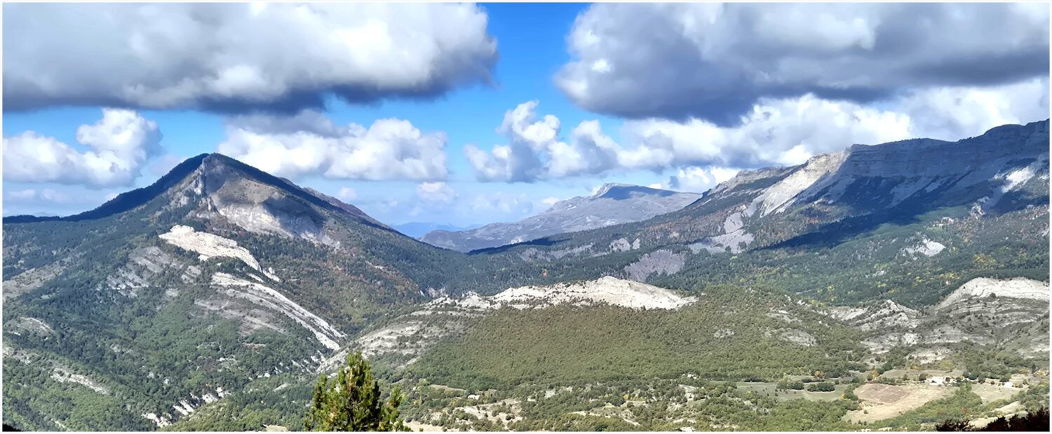 Magnifique panorama au sommet du Roudelau : les Cloches de Barles au Nord
