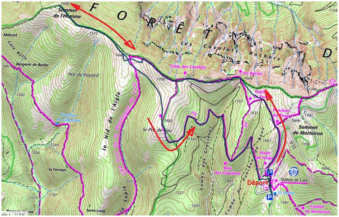 Départ : parking à la station de Lure devant l’Hôtel-Restaurant « le Refuge ».